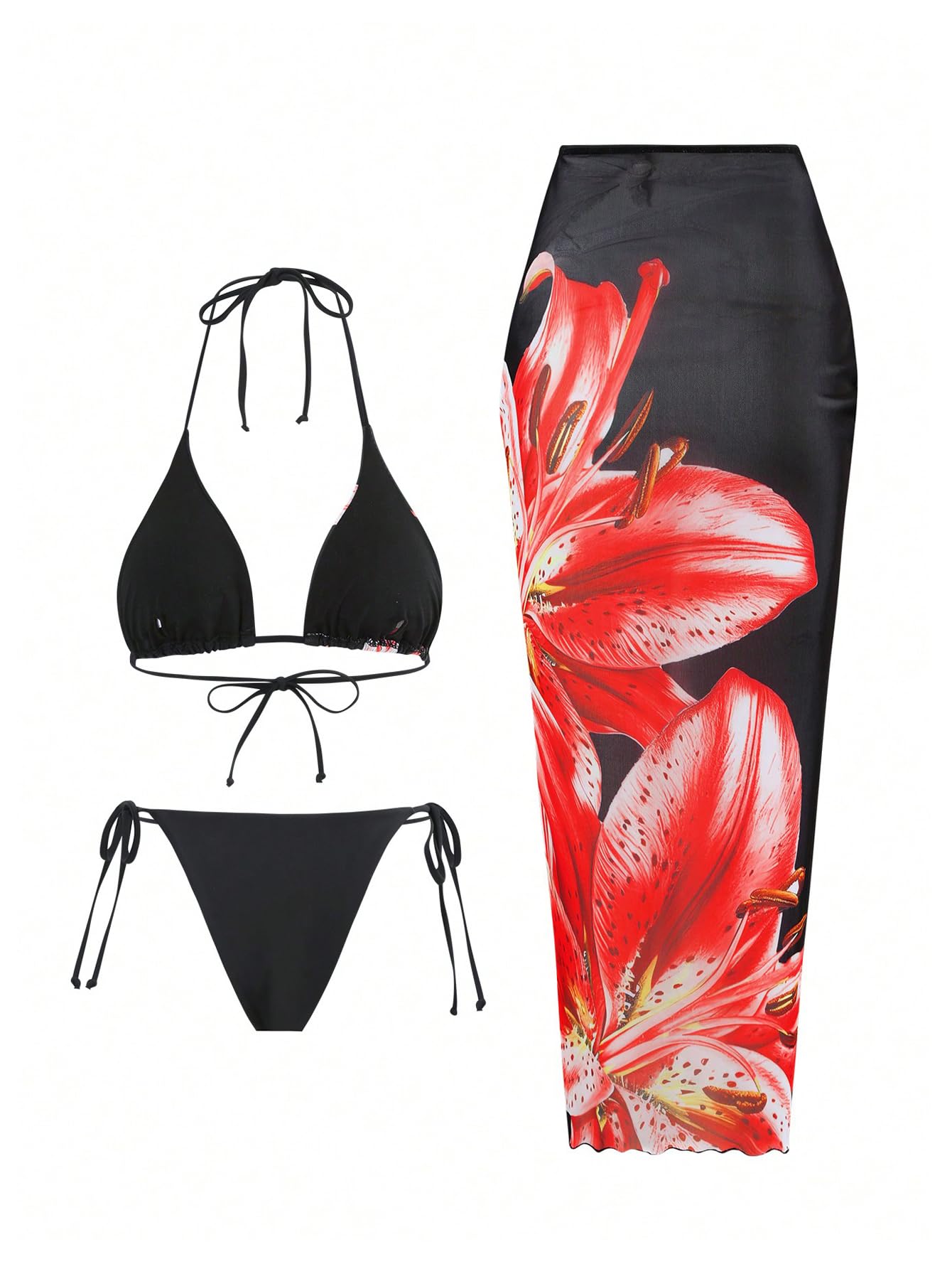 Get ready to steal the spotlight poolside, on the beach, or wherever the sunshine takes you. The Women’s 3 Piece Swimsuit Floral Print Halter Triangle Tie Side Bikini Set with Cover Up Skirt is more than just swimwear—it’s a summer statement. As featured on @wetheclassy